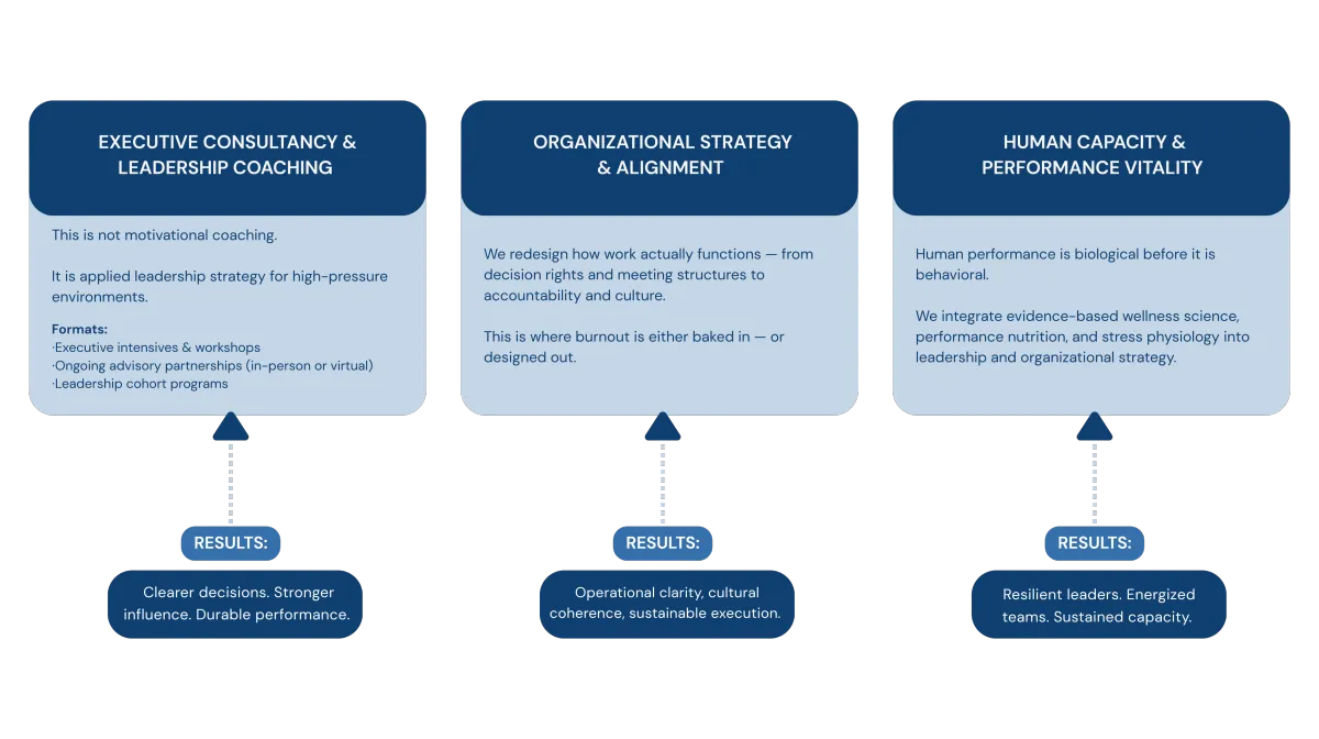 Sustainable performance requires intentional systems design — not motivation, band-aid wellness programs, or one-dimensional consulting.